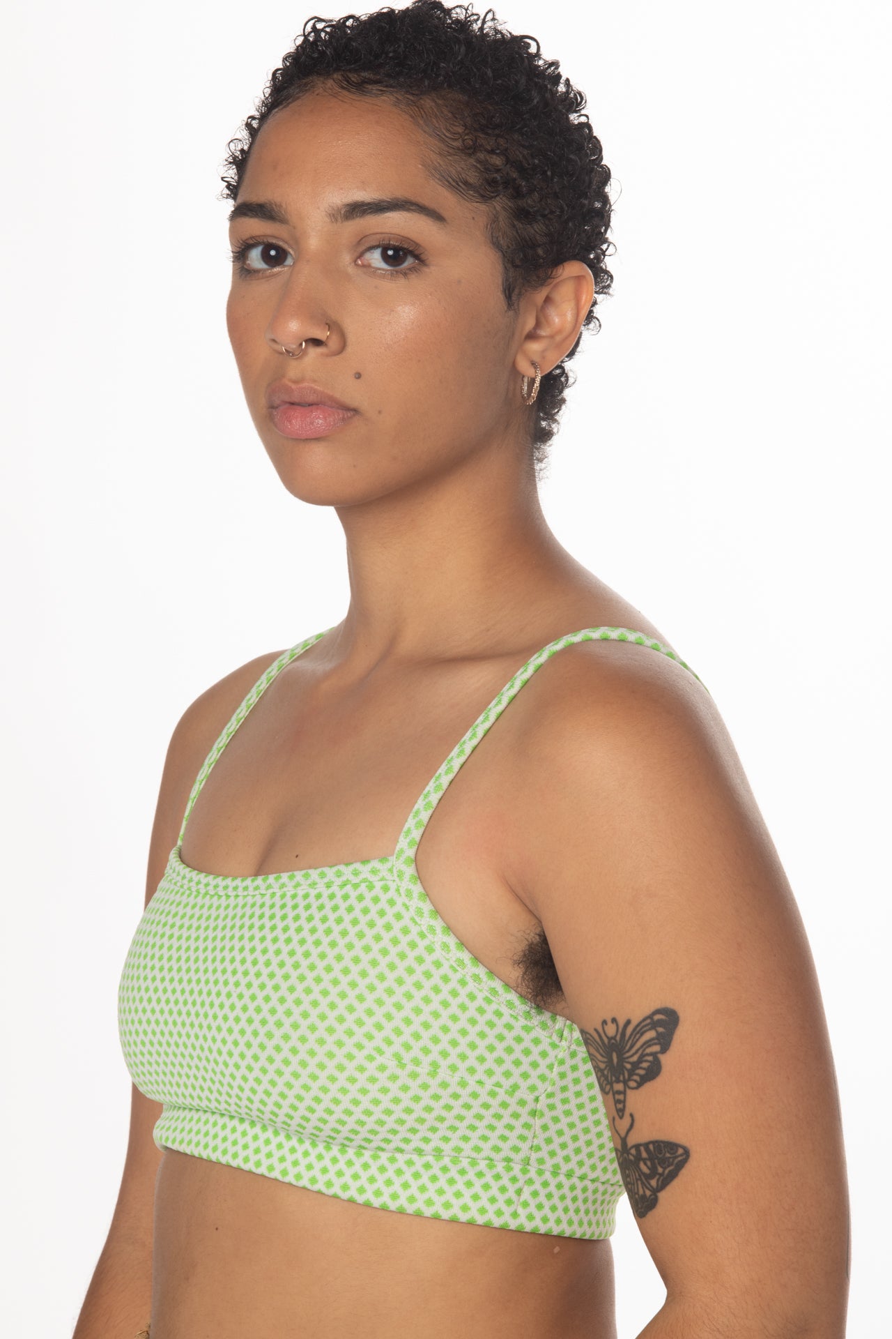 Ready to ship!!!! Shop our track bralette! Bralette features a lime green and white grid print made from vintage deadstock fabric. Limited quantities.