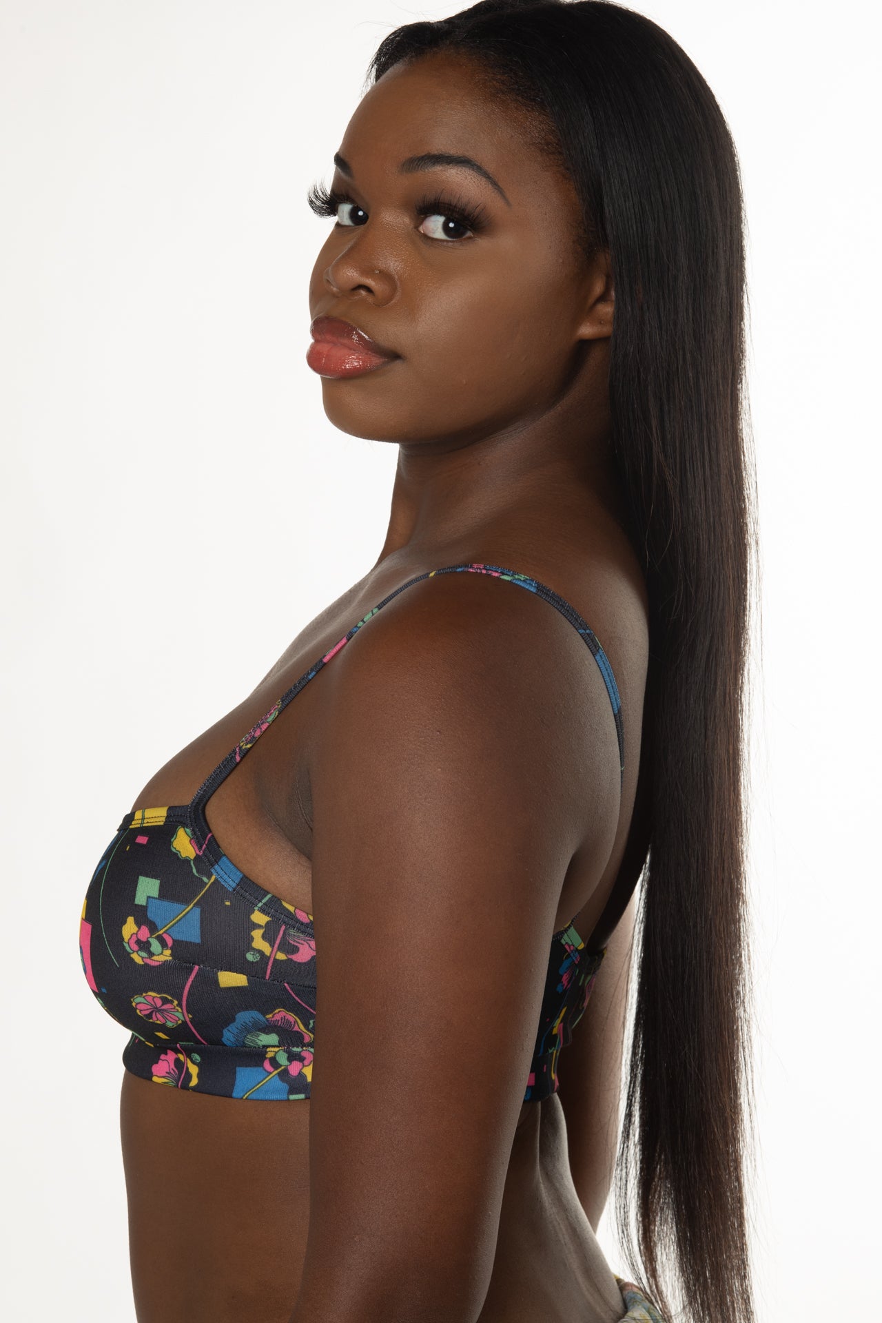 Ready to ship!!!! Shop our track bralette! Bralette features a fun mod pop art graphic print made from vintage deadstock fabric. Limited quantities.